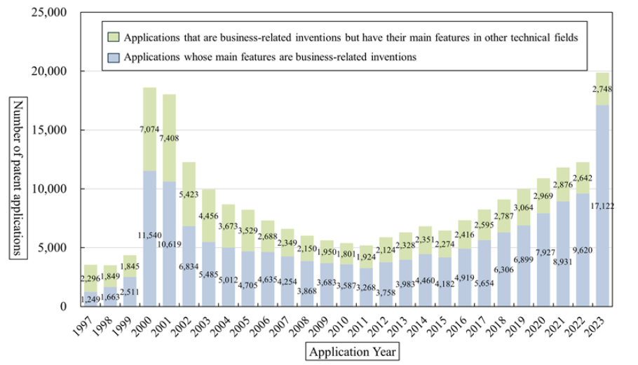 Figure 2: Trend in domestic patent applications for business‑related inventions (source: Japan Patent Office)